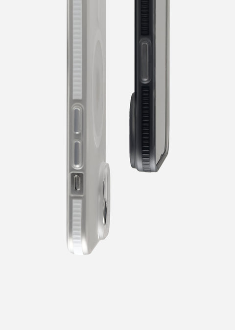 Raised lip that protects screen and camera lenses. Metal buttons for tactile clicks.